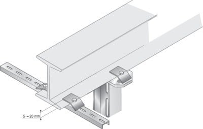 Pour fixation de fortes charges sous charpentes métalliques, avec rails STRUT 41 ou UPN.