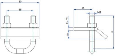 Pince étrier STRUT 41x41, diamètre 10, finition GC Plage de serrage de 5 à 20, livrée avec boulonnerie. Pour fixation de rails STRUT sur IPN.