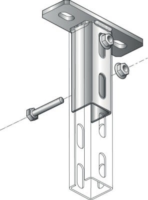 Plaque de tête pour rail C35x35 perforé fixation par 2 boulons THE M8x50 + HE non livré avec la plaque de tête.