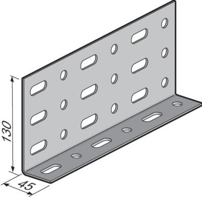 Profil en L perforé épaisseur 3.00 mm, perforations oblongs 32.5x12.5 mm et rondes diam. 12.5 mm.