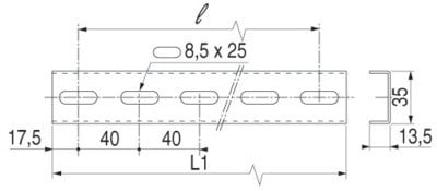 NIEDAX - Profilé perforé U 35x13.5x2.00, 2m, SZ - 015207