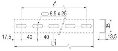 Profil en U perforé avec oblongs 8.5x25 pour toutes applications