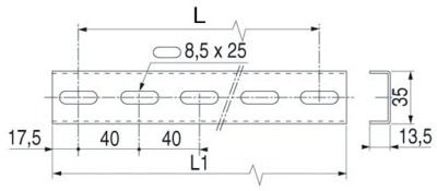 NIEDAX - Profilé perforé U 35x13.5x2.00, 3m, SZ - 015206