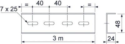 Profil en U perforé avec oblongs 7x25 pour toutes applications