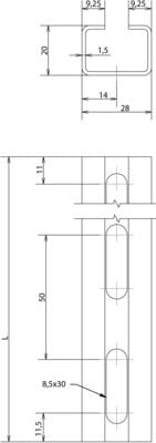 NIEDAX - Rail perforé C 28x20, série SU 28, 2m, SZ - 652606