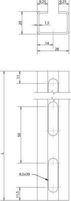 NIEDAX - Rail perforé C 28x20, série SU 28, 3m, SZ - 652605