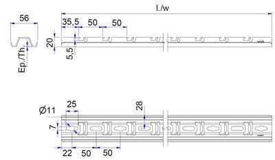 NIEDAX - Rail S100U, 2m, SZ. Système universel pour chemins de câbles tôle et fil. - 747110