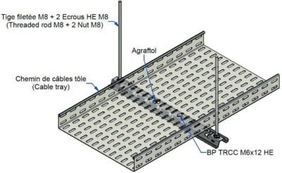 Système universel pour chemins de câbles en tôle et fil, fixation sans boulons pour les chemins de câbles en fil, breveté.