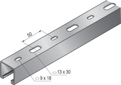 Rail STRUT 41 multifonctions pour supportage et confection de structure sur chantier, ouverture du rail 22mm
