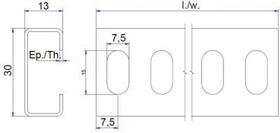 NIEDAX - Rail Télex en C, 30mm, 2m, AL - 453002