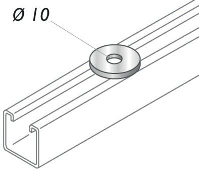 Rondelle plate diamètre 10 mm, pour fixation sur rail STRUT 41, finition EZ