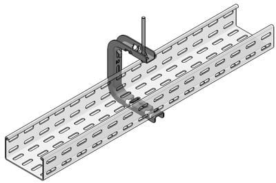Support réversible pour chemins de câbles tôle ou fil de largeur 50 et 100. Fixation murale directe ou plafond par tige filetée.