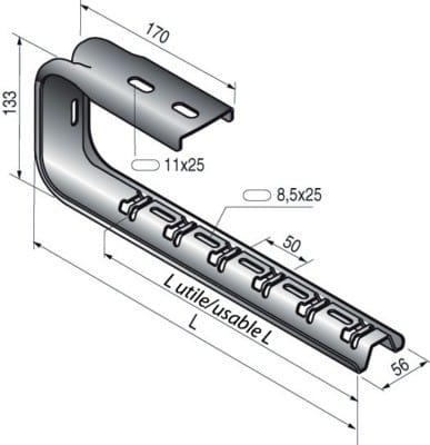 Système universel pour chemins de câbles en tôle et en fil, fixation sans boulons pour les chemins de câbles en fil, fixation directe au plafond.