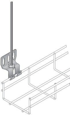 Support vertical SV 50, finition SZ. Pour chemin de câbles fil. Utilisable en suspension par tige filetée 6-8 mm, réglable en 3 positions, mains libres : blocage en translation.