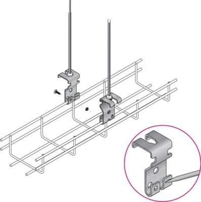 Pour chemins de câbles Fil :- Verrouillable par tournevis- Mains libres : la tige filetée ne peut pas se décrocher- Sécurisation par TRL M6x30- Suspension réglable : se glisse dans le rail STRUT41