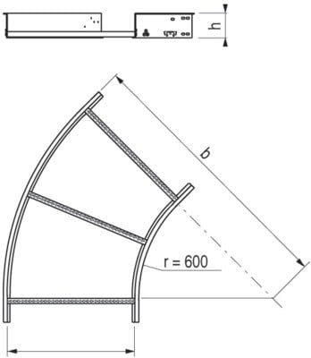 Virage 135 degrés préfabriqué rayon 600 prêt à être installé, pour échelles à câbles Hercule, prévoir 4 éclisses et boulons TRCC M8x18.