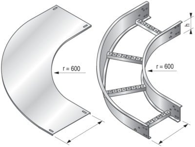 Virage 90 degrés préfabriqué rayon 600 prêt à être installé, pour échelles à câbles Hercule, prévoir 4 éclisses et boulons TRCC M8x18.