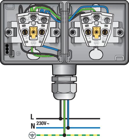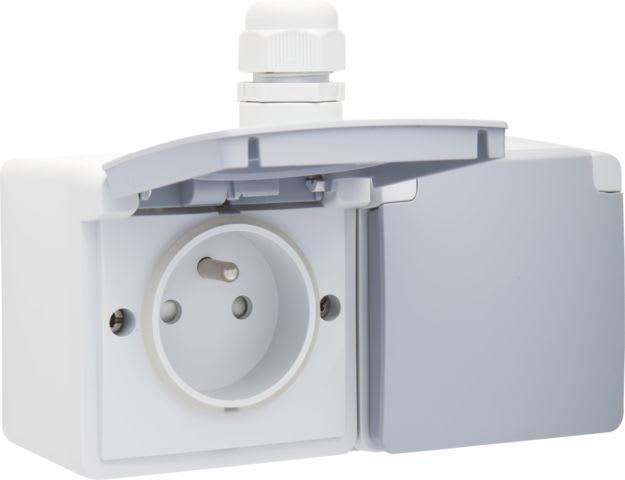 Niko - PRISE DOUBLE HORIZONTALE ÉTANCHE, AVEC BROCHE DE TERRE, VIS - 700-37748