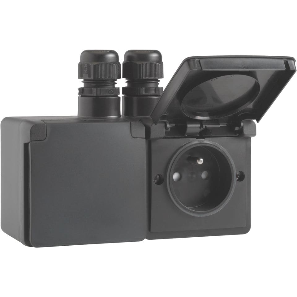 Niko - PRISE DOUBLE HORIZONTALE ÉTANCHE, AVEC BROCHE DE TERRE, VIS - 761-37749