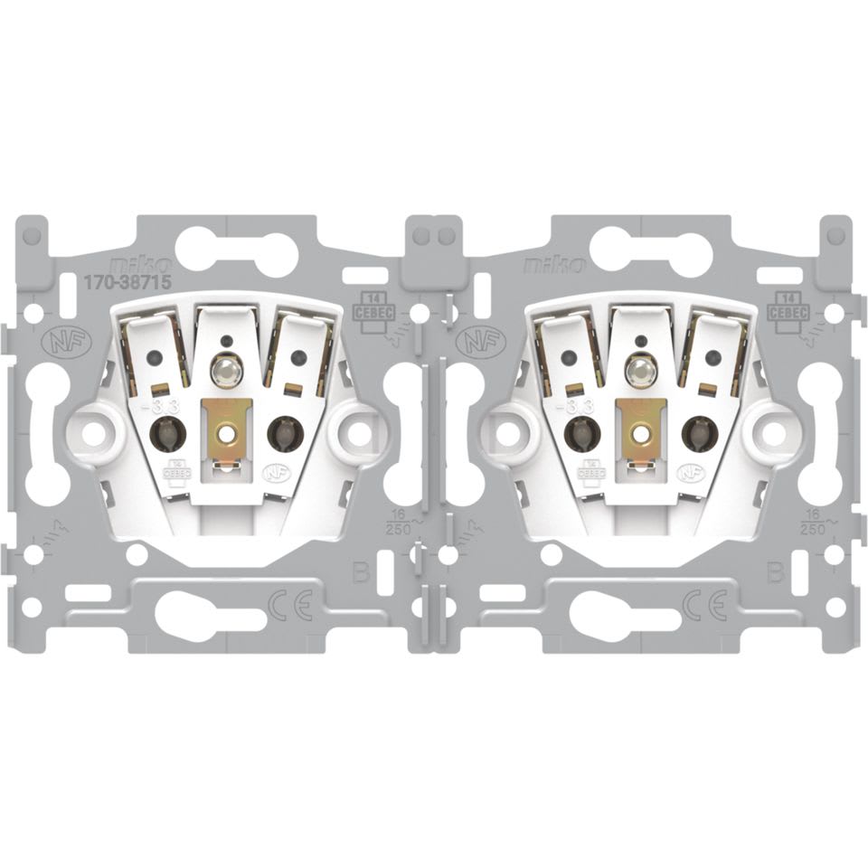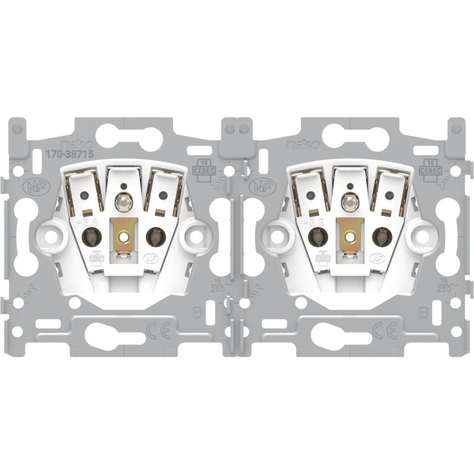 Niko - SOCLE PRISE DOUBLE HOR., BROCHE DE TERRE, 28,5MM, CONN. RAP. - 170-38715