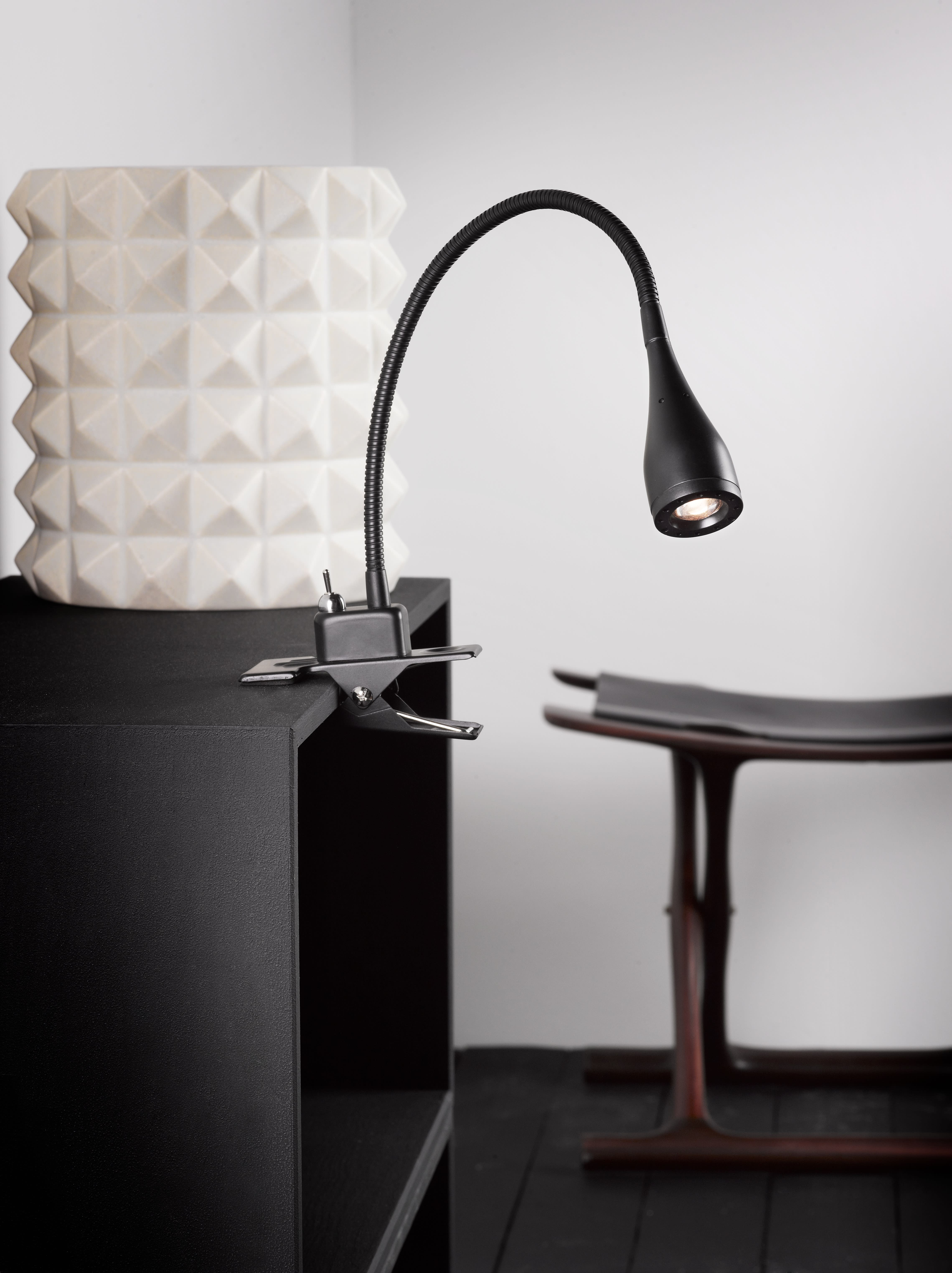 MENTO est une spot à pince de coloris Noir en Métal. LED integrée, 130 Lumens 3000K