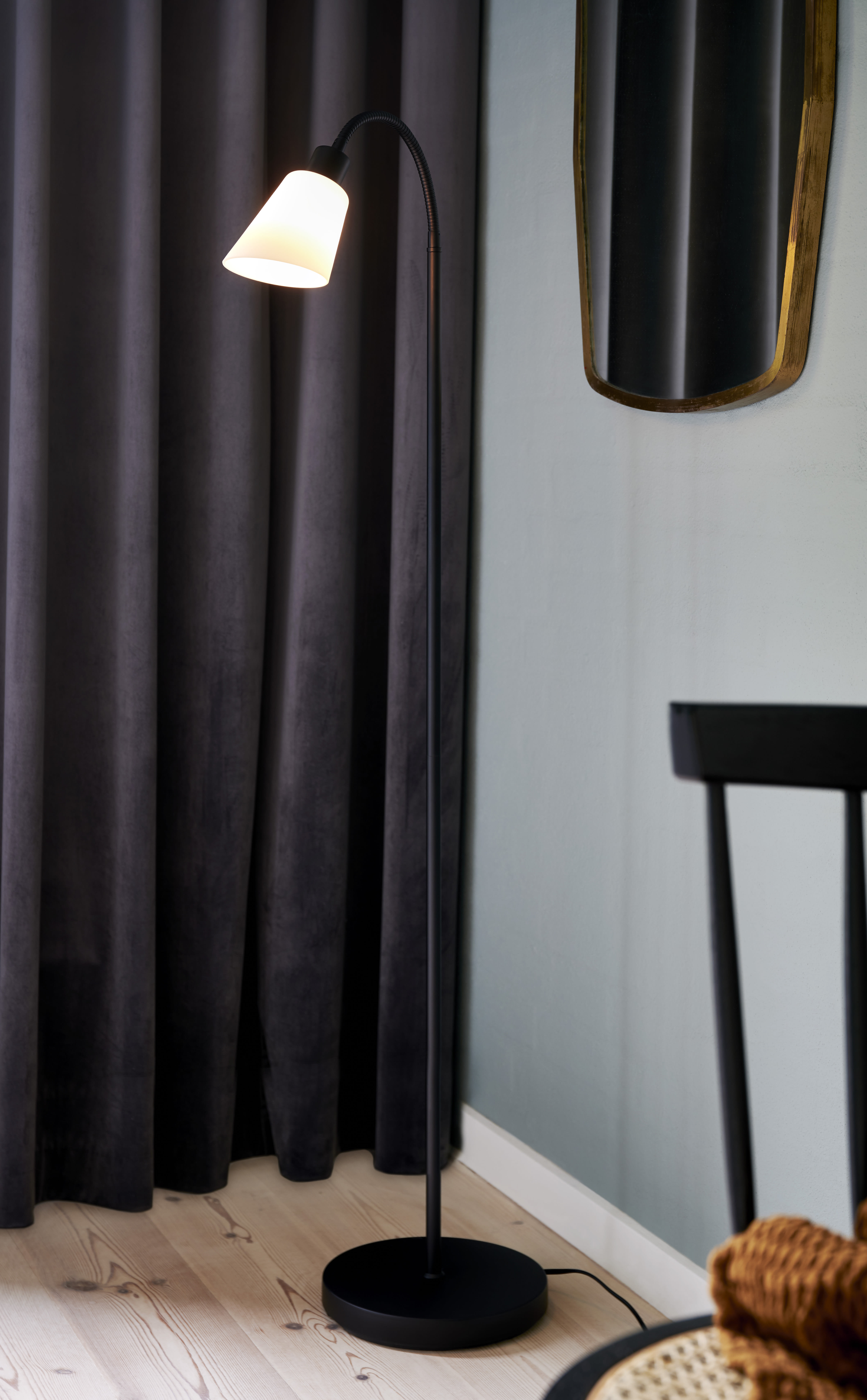 Molli est une série d’éclairages flexibles au style minimaliste et classique. L'abat-jour en verre blanc opale émet une lumière agréable. Vous pouvez régler la tête d’éclairage sur le bras flexible pour diffuser une lumière directionnelle.