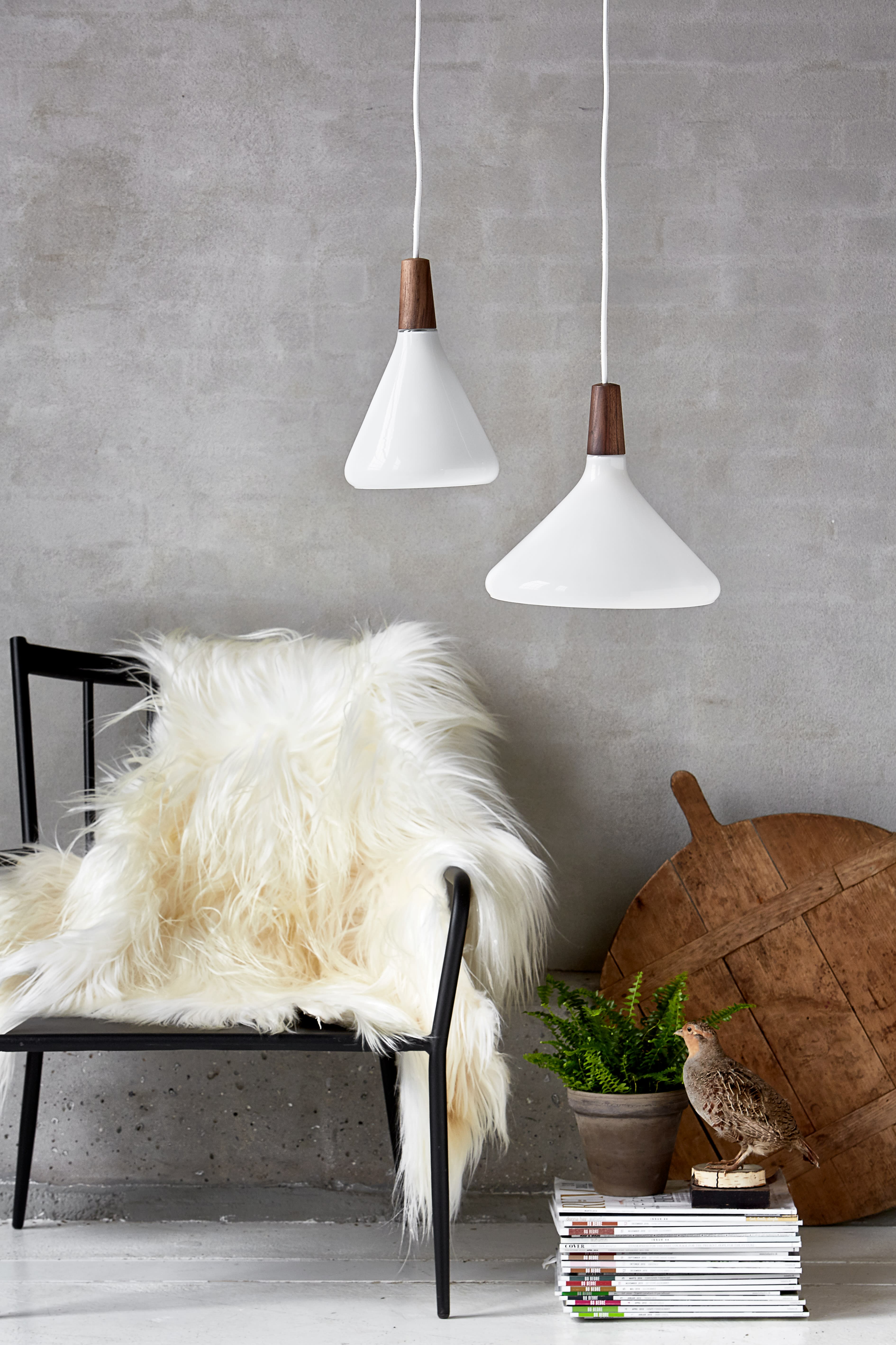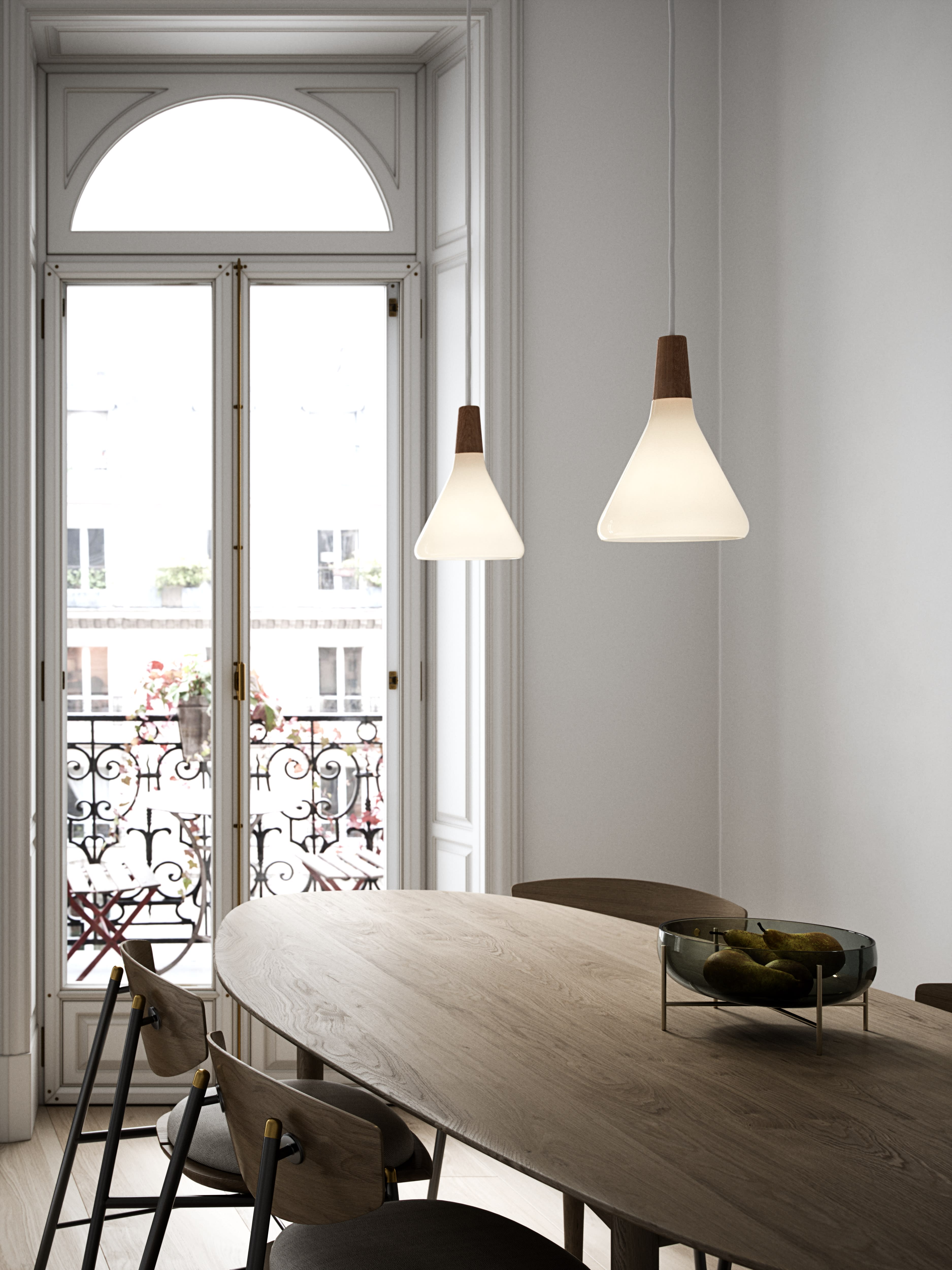 Minimalisme nordique et légèreté suspendue sont les maîtres mots de la série de suspensions Nori. Les formes organiques et arrondies donne au design une simplicité unique complétée par la chaleur du bois de noyer huilé à son sommet.