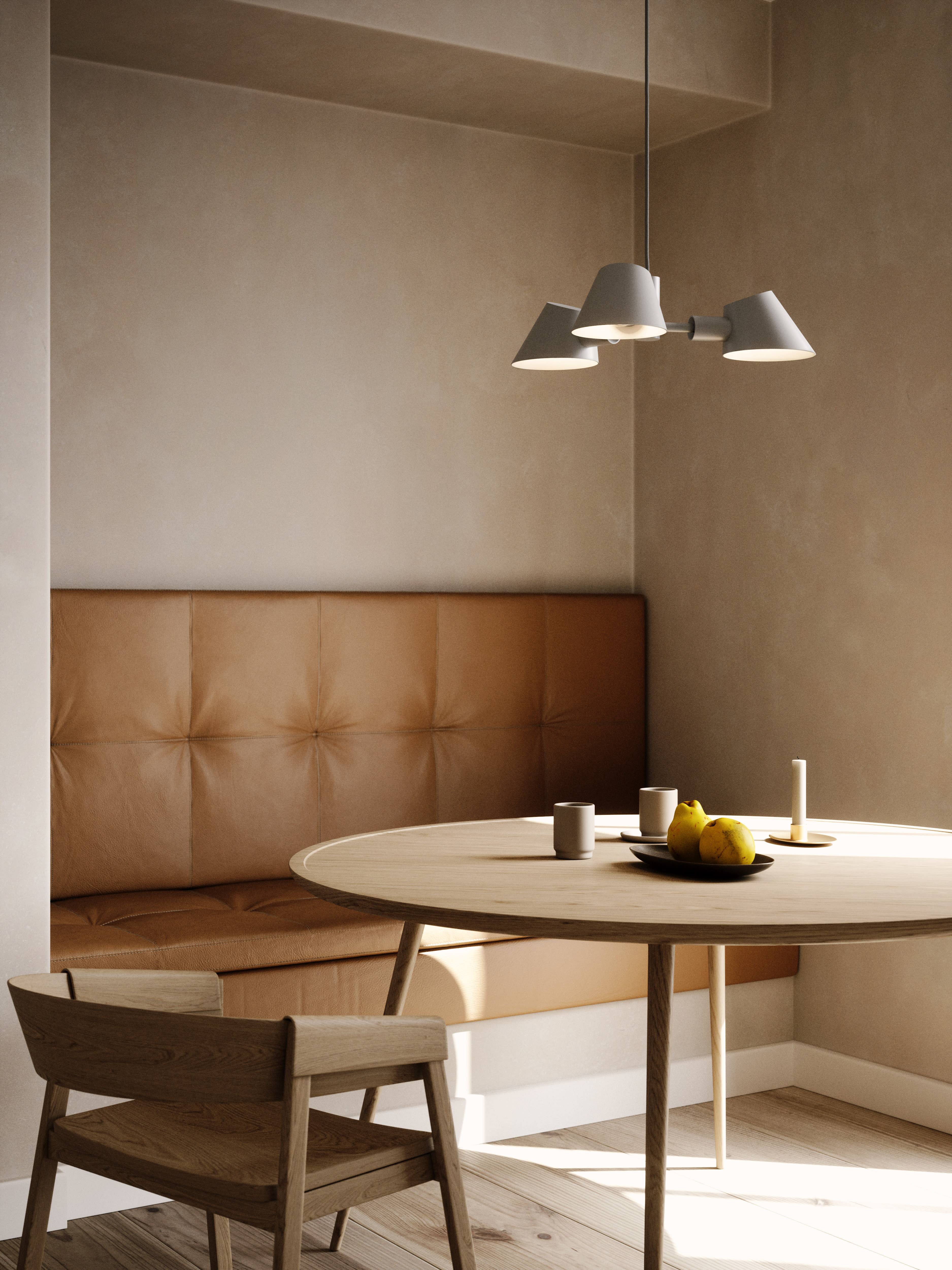 Stay est à la fois une conception d'éclairage moderne et intemporelle. La coupe oblique de l'abat-jour crée une forme ouverte et pointue qui laisse passer beaucoup de lumière.