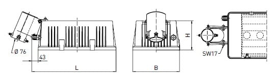 Élément de montage en top de mât, diamètre 76 mm, orientable et verrouillable de 8 à 53°, pour projecteurs de la gamme POLARIS