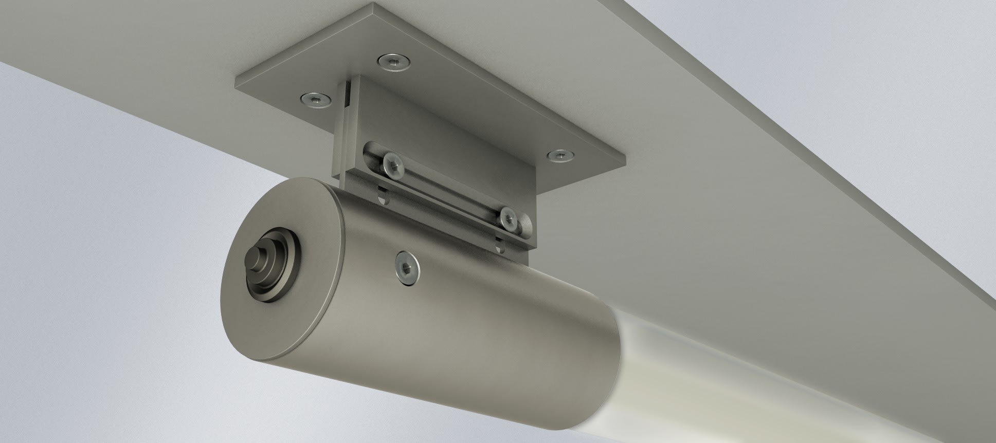 Embout avec étrier de fixation du luminaire, (étrier qui fixe le luminaire par pas de 5 x 45° pour une apparence uniforme de la ligne continue), ne convient pas pour les atmosphères contenant du chlore. Accessoire pour la gamme BERN LED
