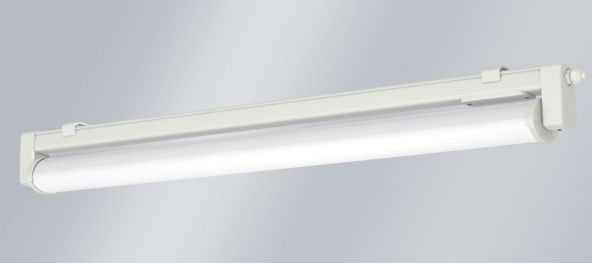 Luminaire apparent COESFELD m1500, 1 lampe, résistant à l'ammoniaque, diffus, 5280 lm, 30W, 4000K. Tube réflecteur en PMMA Transopal® (résistant aux chocs), IK 04. Température ambiante -25°C à + 45°C.