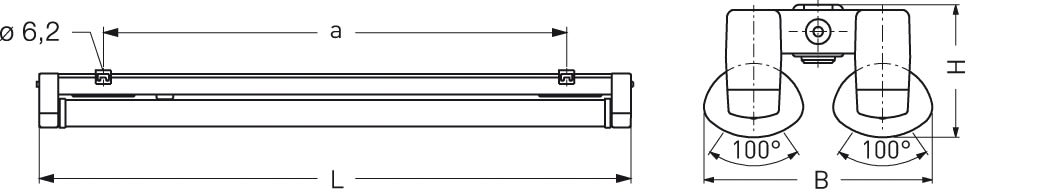 Gamme de luminaires LED apparent en matière synthétique, 1, 2 ou 4 lampes. Utilisable dans les applications industrielles ou dans les zones soumises à des exigences de protection particulières, bâtiments à grande hauteur. Durée de vie élevée : L80 B10 > 100000 h à +40 °C. Appareillage et module optique séparés, les rendant réparables l'un et l'autre indépendamment. Disponible en 3 tailles : 600, 1200 et 1500. Différentes optiques. Optique réglable par pas de 10°. IP65 et IK selon le diffuseur : IK04 en PMMA et IK09 en PC. Garantie 8 ans.