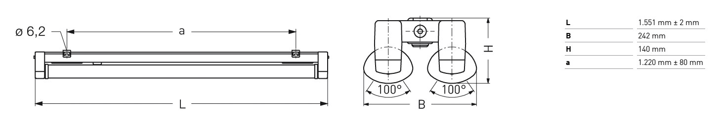 Norka by RIDI - Luminaire apparent ERFURT LED INDUS M1500 2 lampes 12600lm, PMMA, 4000K, diffus - 4376803424-E-12600LM