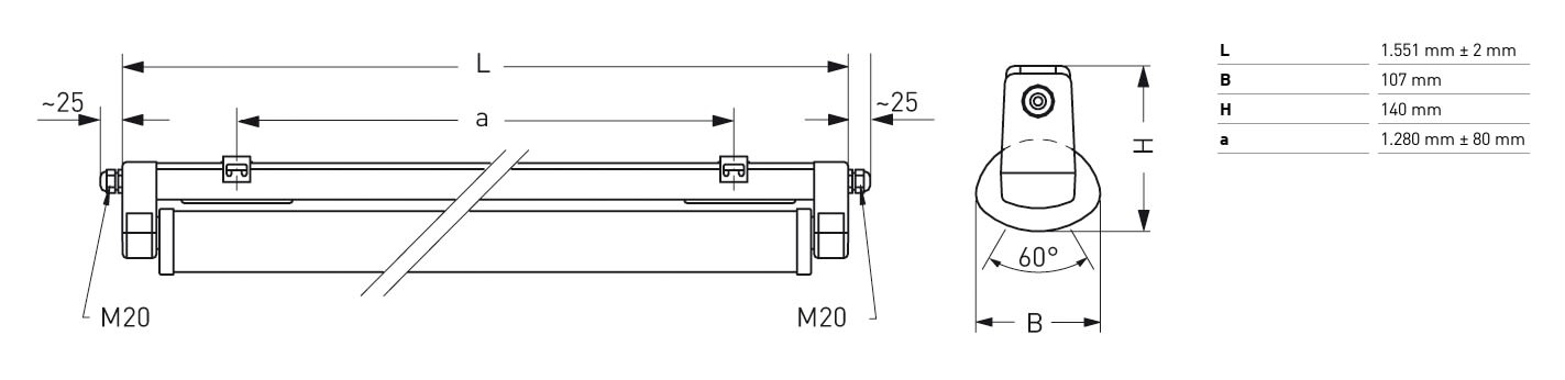 Gamme de luminaires LED pour application agroalimentaire (HACCP-/IFS). Luminaire résistant au nettoyage intensif à haute pression. Appareillage et module optique séparés, les rendant réparables l'un et l'autre indépendamment. Disponible en 2 tailles : 1200 et 1500. IP selon l'utilisation IP65, IP66, IP67 et IP69K, et IK selon le diffuseur : IK04 en PMMA ou IK09 en PC. Optique réglable. Garantie 5 ans.