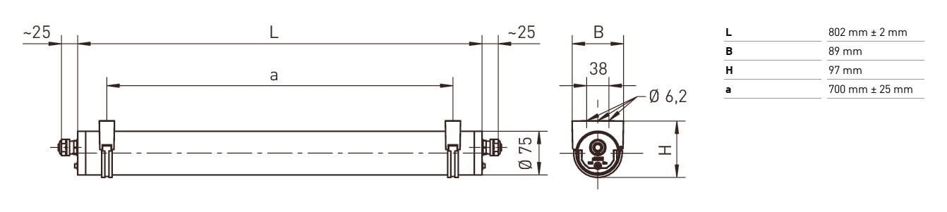 Gamme de luminaires LED tubulaire. Utilisable dans des applications industrielles, fosses de maintenance pour l'entretien et la réparation, pour l'éclairage décoratif intérieur et extérieur, y compris en immersion jusqu'à 20m. Appareillage et module optique séparés, les rendant réparables l'un et l'autre indépendamment. Disponible en 3 tailles : 600, 1200 et 1500. IP selon l'utilisation : IP65, IP66, IP67, IP68 (20m), IP69K et IK selon le modèle (vitre) : IK09 en PMMA et IK10 en PC. Garantie 5 ans.