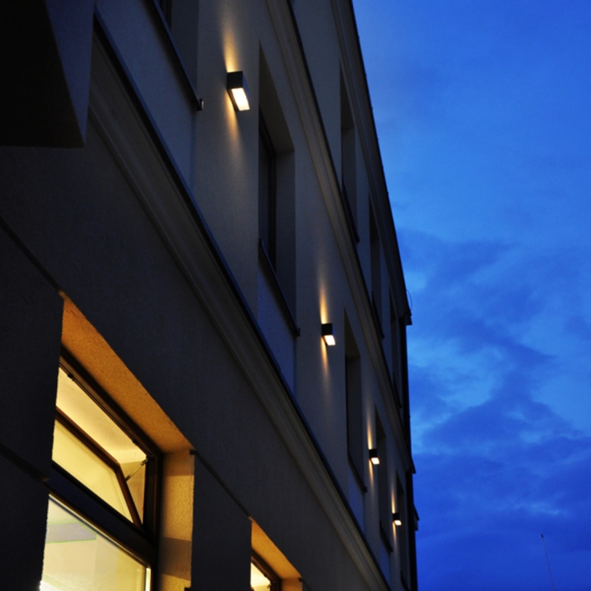 Très bel effet de lumière vers le haut et vers le bas pour ce luminaire en aluminium qui pourra si besoin être coordonné aux bornes et lampadaire de la même gamme. Cette applique est très résistante à la corrosion.