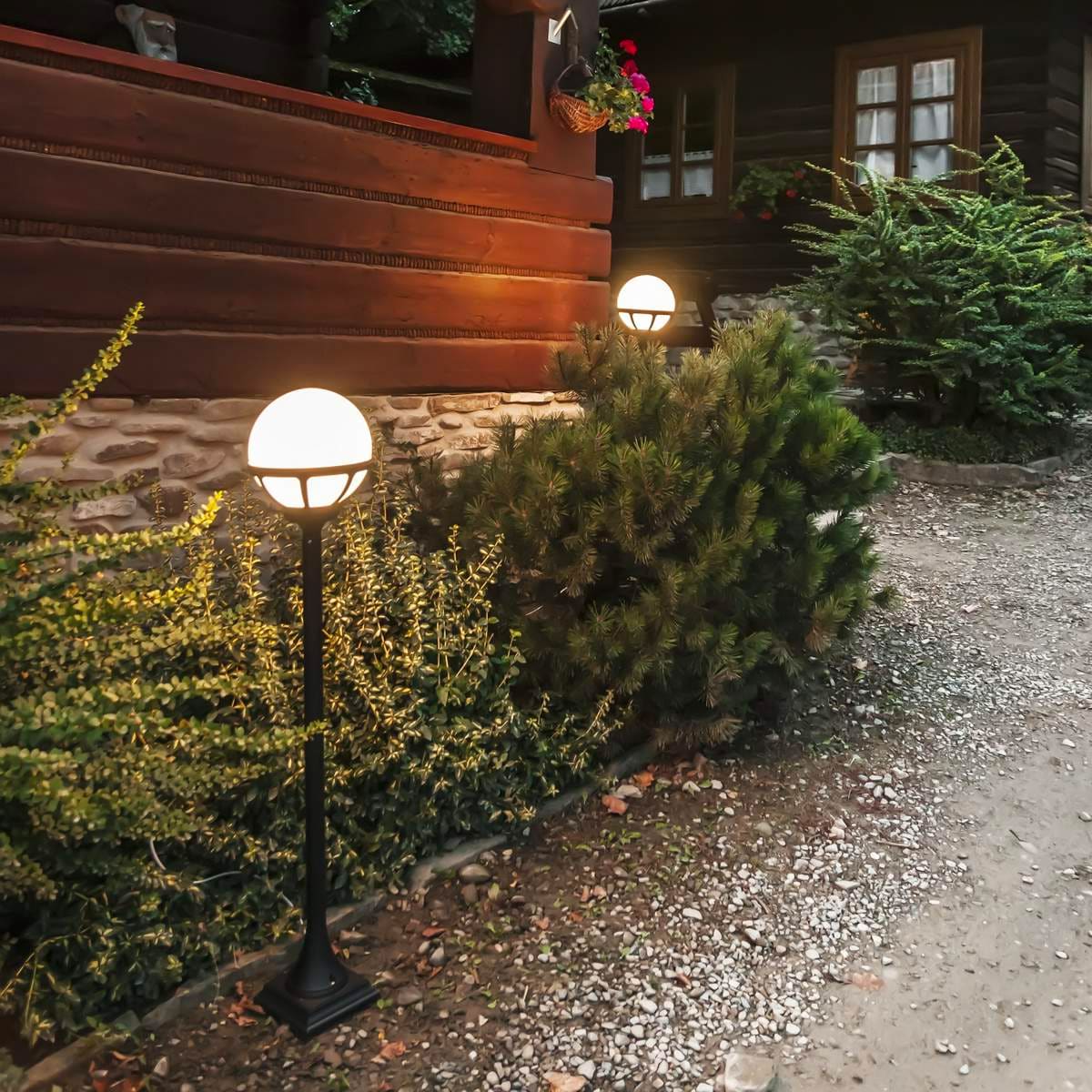 Norlys - BOLOGNA POTELET noir 46W halogène max./E27 IP54 cl II ver. opale polyc. H1175mm - 315SV