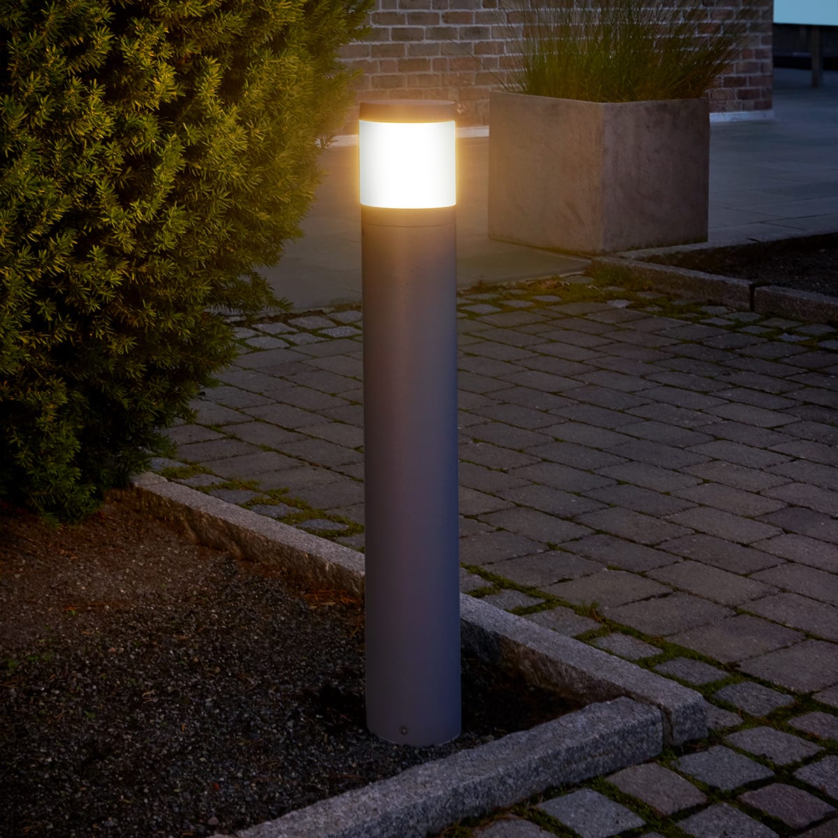 Cette borne en aluminium possède une grande résistance à la corrosion. Son design contemporain et épuré saura se marier à tous les styles.