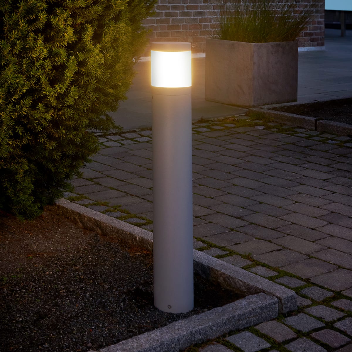 Cette borne en aluminium possède une grande résistance à la corrosion. Son design contemporain et épuré saura se marier à tous les styles.