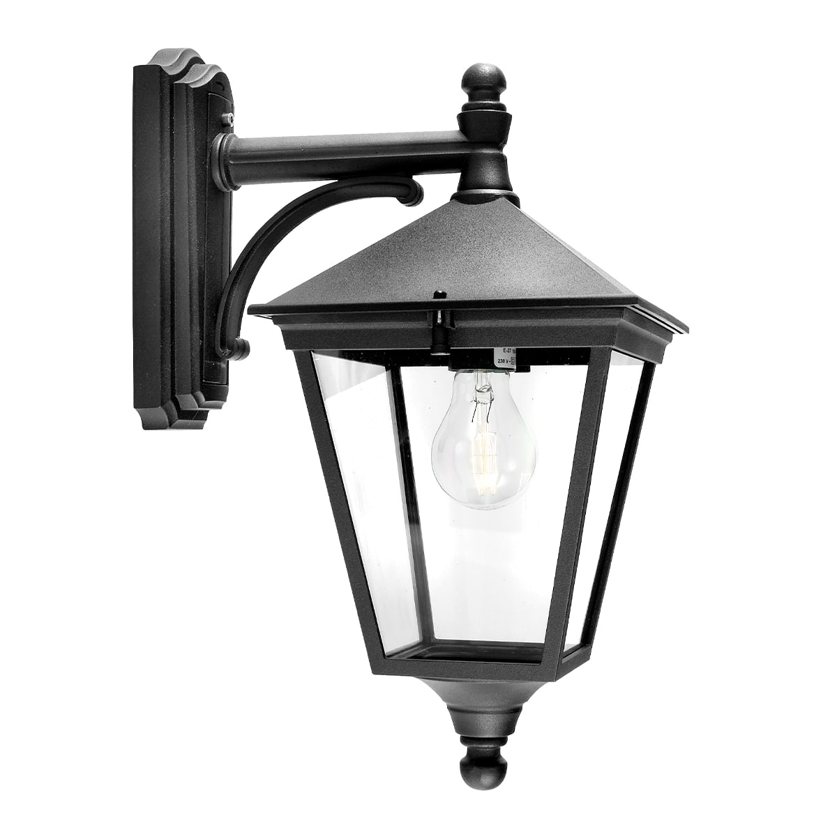 LONDON couleur noir 77W halogène max./E27 IP54 classe II verrerie claire polycarbonate H420mm - dirigé vers le bas