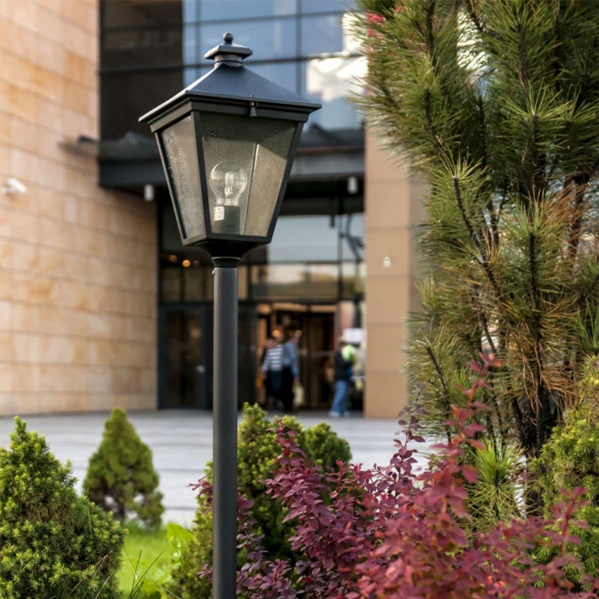 Norlys - LONDON POTELET noir 77W halogène max./E27 IP54 cl II ver. claire polyc. H1200mm - 485SV