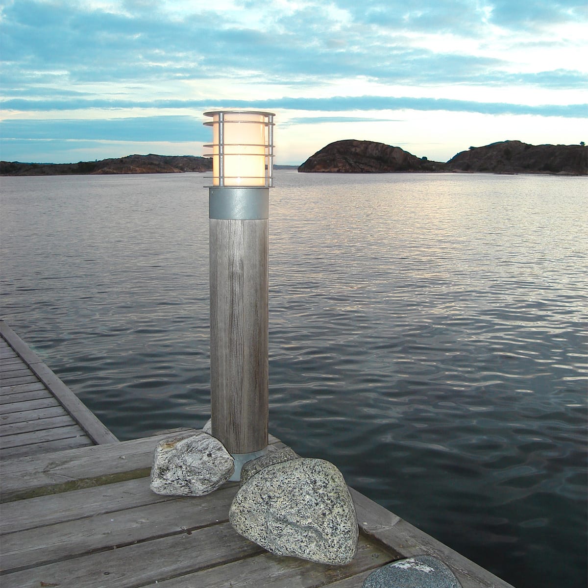 Norlys - STOCKHOLM galvanisé bois brut 46W halogène max./E27 IP65 cl II ver opale H850mm - 1423GA