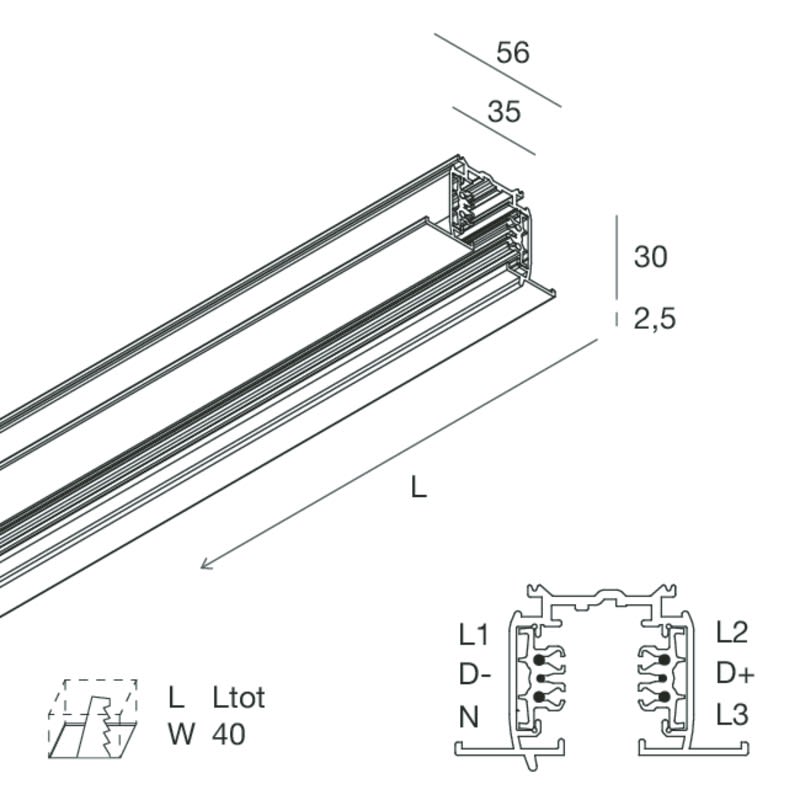 Rail électrifié 3 allumages 7 pôles pour le montage de spots LED et luminaires LED Novalux, disponible en versions à luminosité gradable. Offre une multitude de solutions lumineuses et une large gamme d’accessoires. Idéal pour créer un focus lumineux dans magasins et salles d’exposition.