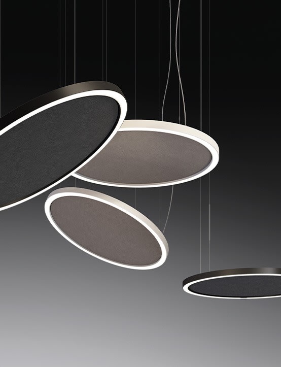 Novalux présente la solution idéale pour allier confort acoustique et solutions d’éclairage. Les panneaux insonorisants du nouvelHALOS ACOUSTIC contribuent à améliorer le bien-être général des personnes qui travaillent et vivent dans la pièce, tout en donnantdu caractère, grâce aux finitions des matériaux à effet to remove noir graphite et gris fer.