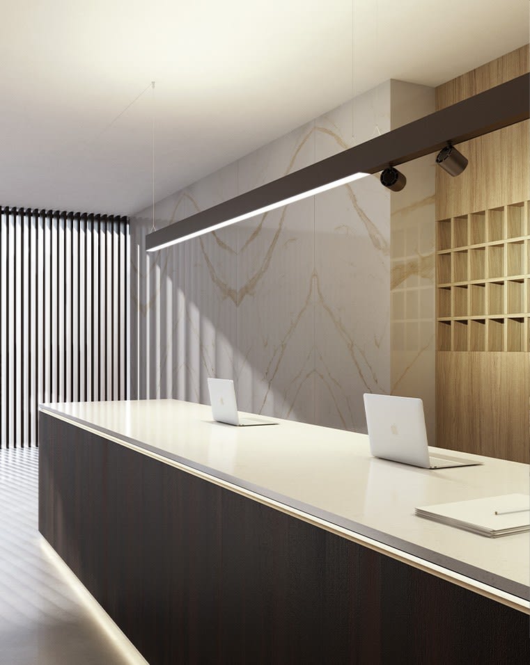 HERO B est le profilé LED pour l’installation en suspension avec émission de lumière diffuse indirecte, à associer à un système à diffusion directe de la lumière avec micro-optiques ou d’élégants spots orientables, tous réalisés avec des LEDs à haut rendu des couleurs. L’excellent confort visuel, et un design minimaliste font de HERO B le produit Novalux idéal pour les commerces, les bureaux et le résidentiel, disponible dans les nouvelles finitions café et cappuccino.