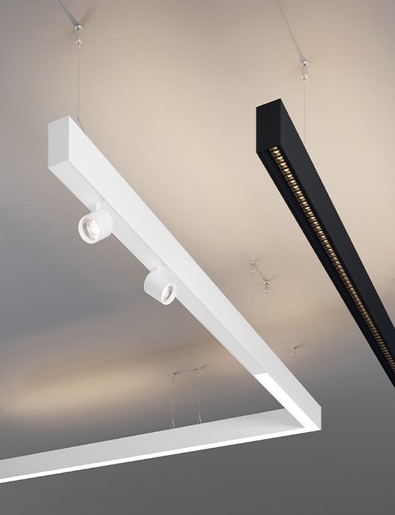HERO B est le profilé LED pour l’installation en suspension avec émission de lumière diffuse indirecte, à associer à un système à diffusion directe de la lumière avec micro-optiques ou d’élégants spots orientables, tous réalisés avec des LEDs à haut rendu des couleurs. L’excellent confort visuel, et un design minimaliste font de HERO B le produit Novalux idéal pour les commerces, les bureaux et le résidentiel, disponible dans les nouvelles finitions café et cappuccino.