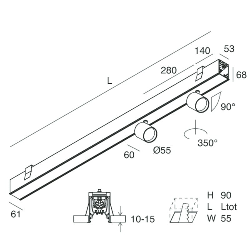 HERO C : PROFIL LED LINEAIRE ENCASTRE, 2 SPOTS, 34° 2X13W 3000K 1120 BLANC