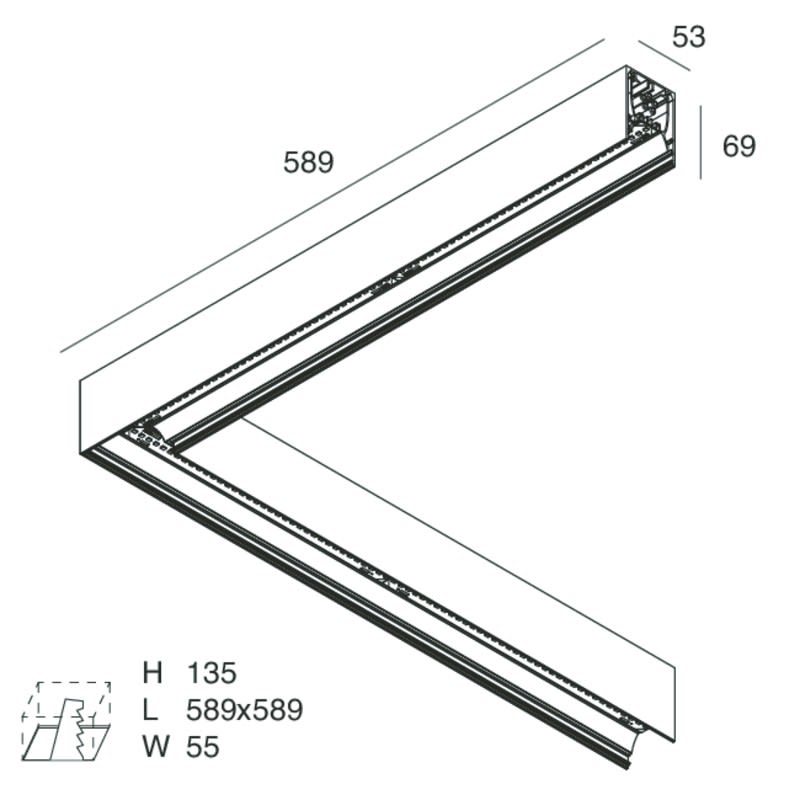 HERO : PROFIL D'ANGLE 90°, PLAFOND/SUSPENSION/ENCASTRE, ANGLE DROIT, 24W 3000K DALI 589 NOIR