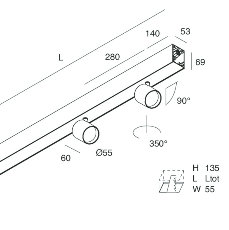 Novalux - HERO : PROFIL LED LINEAIRE PLAFOND/SUSPENSION/ENCASTRE, 2 SPOTS 14° 2X13W 2700K - 108637.20
