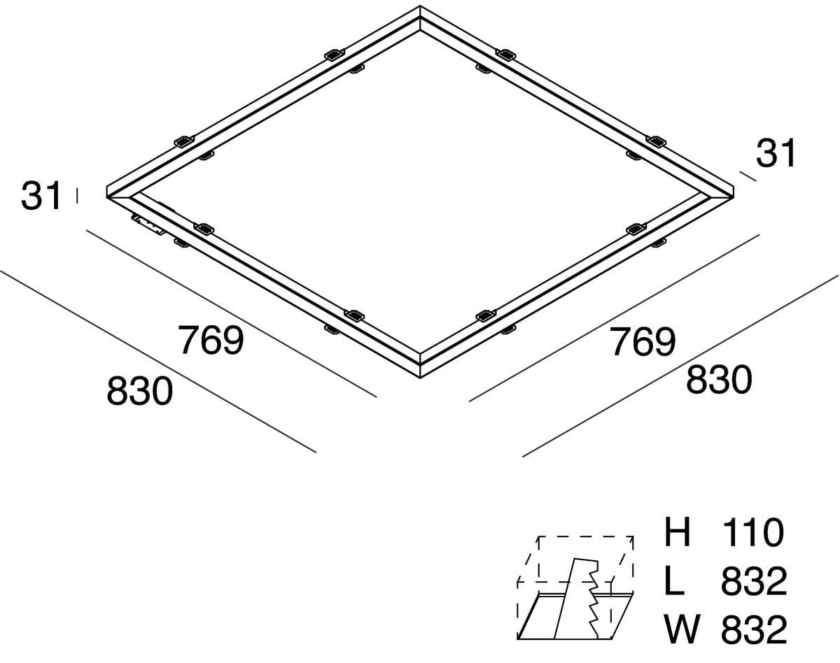 P-30 : ENCASTRÉ CARRÉ 32W 4000K BLANC L=830